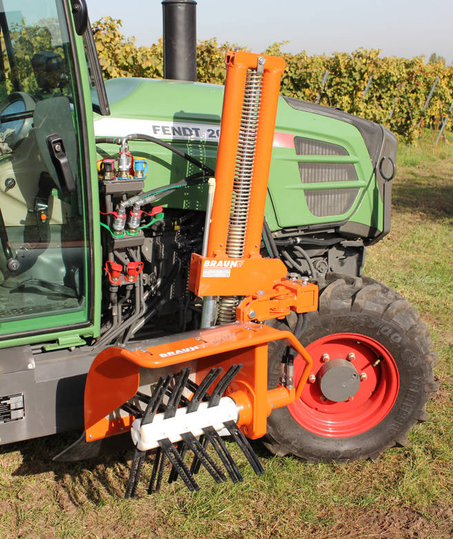 La Spollonatrice W1-W2 Braun è la soluzione ideale per una pulizia rapida ed efficace del piede della vite, eliminando sia polloni che infestanti. È equipaggiata con gomme brevettate Braun, morbide ma resistenti, dotate di tela interna rinforzata: garantiscono un lavoro energico ma delicato, senza danneggiare la corteccia o il colletto della pianta imitando il lavoro dell’uomo. Possibilità di aggancio anche a nostro tagliaerba Alpha.