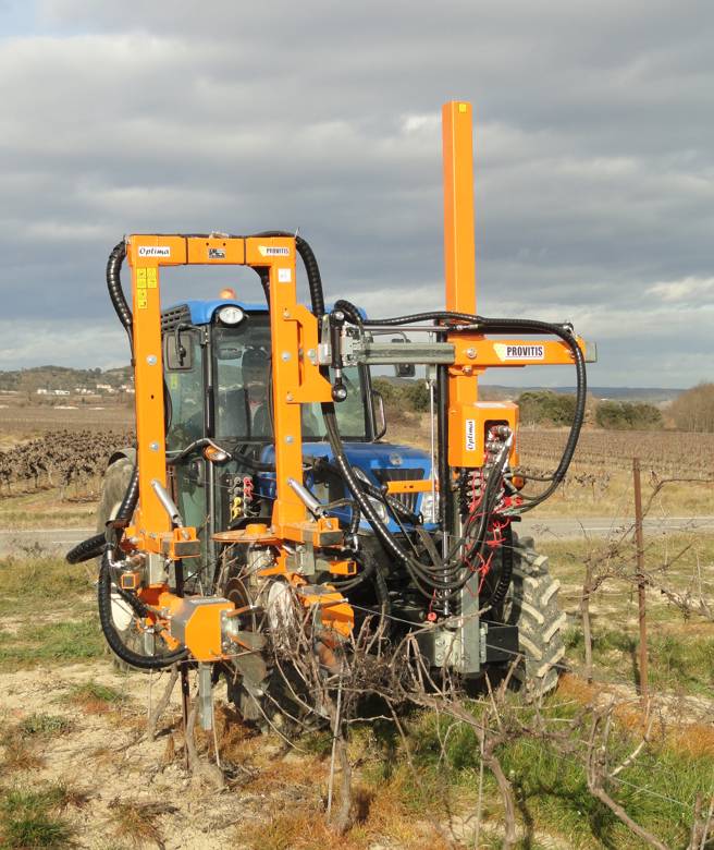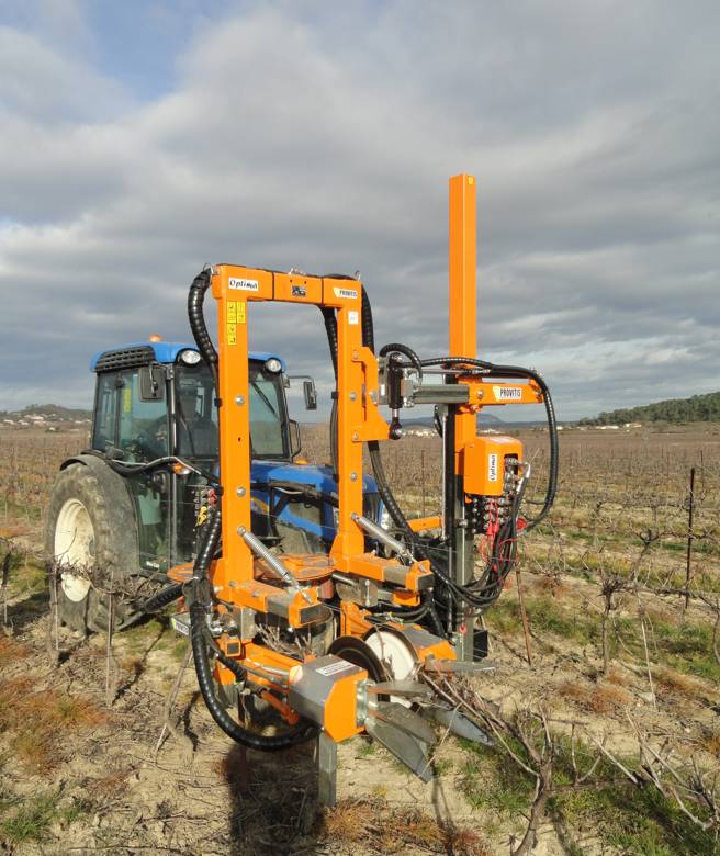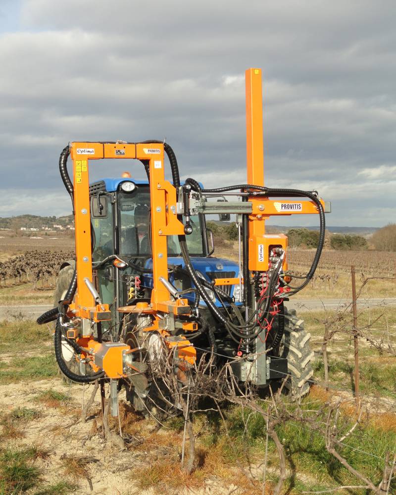 La potatrice MPH44 è la macchina specifica per il taglio a raso del cordone. È composta da un telaio scavallante equipaggiato con quattro dischi rotanti (due orizzontali e due verticali) che assicurano un taglio netto dei tralci sia superiormente sia lateralmente, garantendo al contempo il rispetto degli speroni. La macchina è dotata di un sistema di apertura e chiusura automatica dei dischi in prossimità dei pali dell’impianto e di un meccanismo di sicurezza a molla, che ne aumenta l’affidabilità e la protezione durante il lavoro.