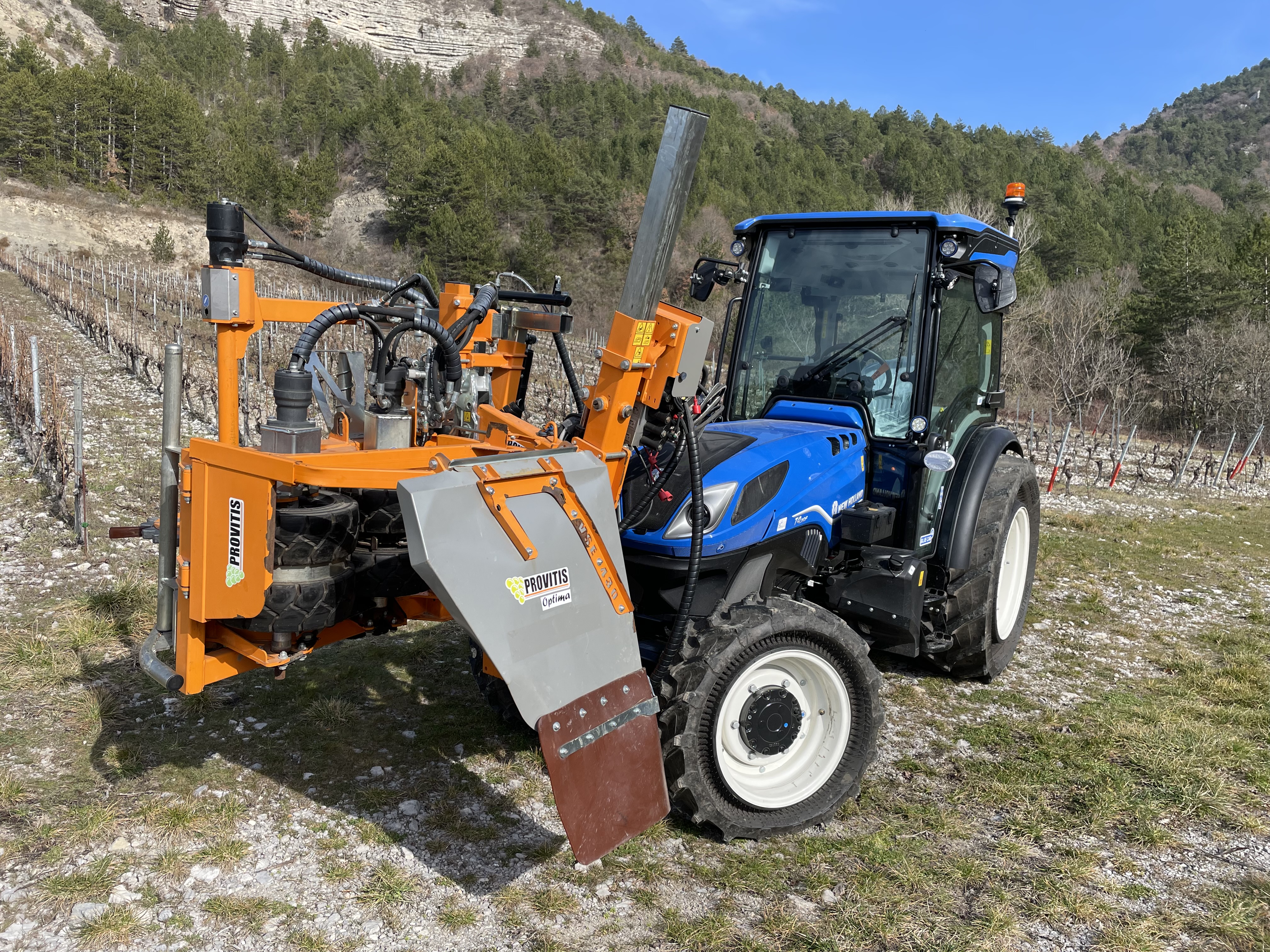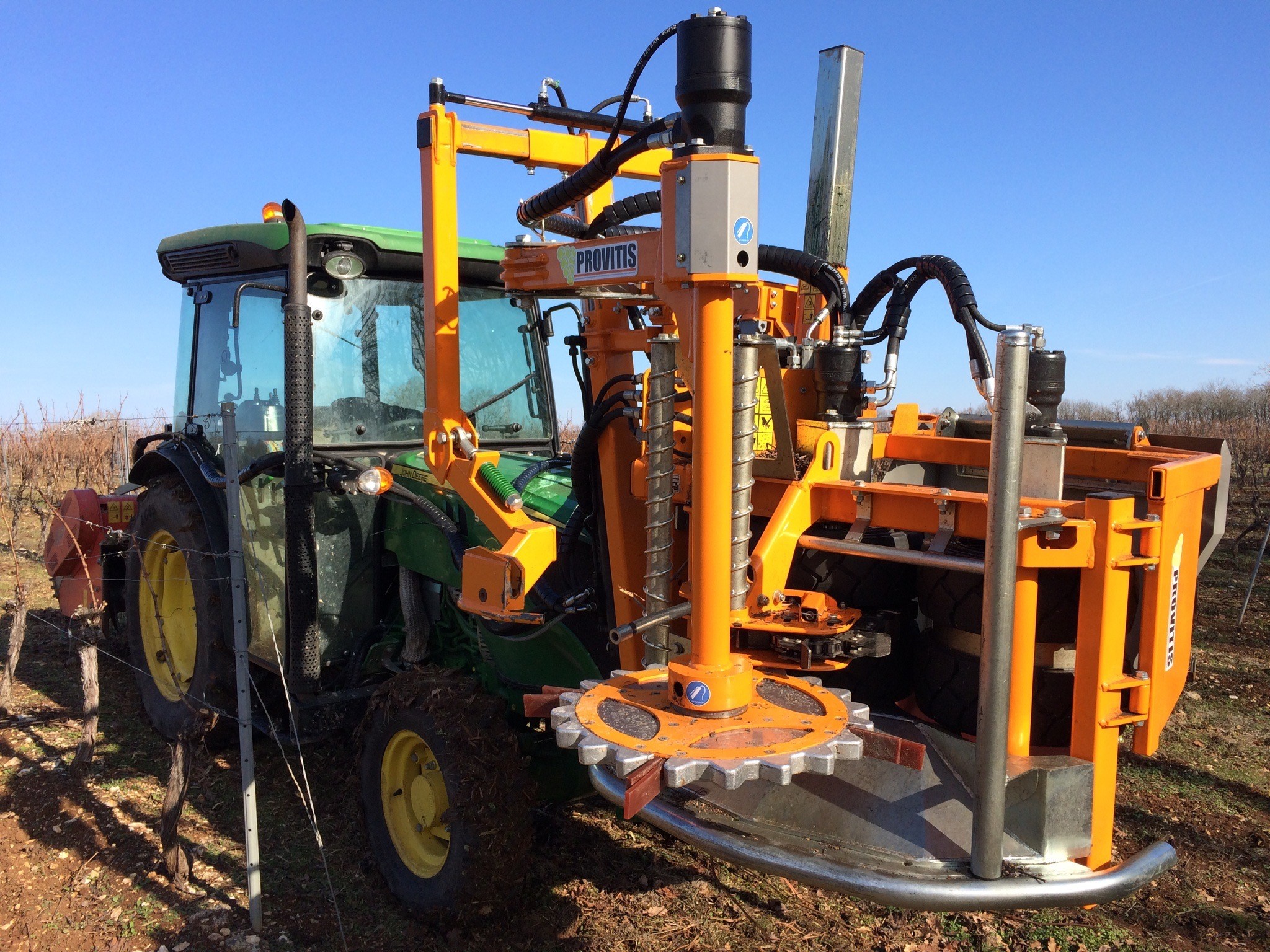La stralciatrice VSE 430 è la macchina Provitis per l'estrazione laterale del legno secco precedentemente potato nel vigneto. Questa macchina rappresenta l'avanguardia nel settore, è una macchina particolare che necessita di una consulenza preliminare attenta sia a livello di impianto, sia a livello di sistema di allevamento per potere ottenere un lavoro ottimale. La Stralciatrice VSE 430 Optima è dotata di un sistema ad estrazione laterale formato da due rulli in gomma con rotazione verticale, cinghia di estrazione con rotazione orizzontale e margherita per il convogliamento del legno secco. Il sistema lavora sfruttando la differenza in altezza nella parte alta fra capo a frutto (pre-potato) e il legno secco. Ideale per vigneti a Guyot e cordone speronato.